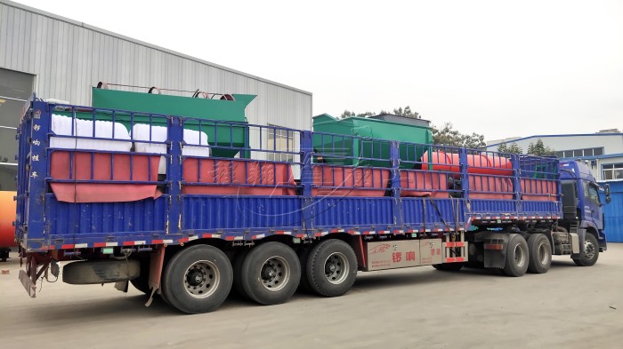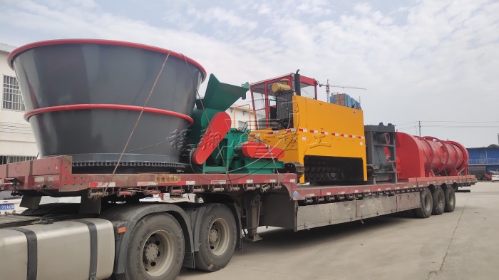 由于該豬糞秸稈有機(jī)肥料生產(chǎn)線產(chǎn)量較大,因此分為多車裝置運(yùn)輸。主要的豬糞加工設(shè)備有:大型秸稈粉碎機(jī)、履帶式翻堆機(jī)、臥式攪拌機(jī)、新型三合一造粒機(jī)、不同型號(hào)的滾筒篩分機(jī)以及多個(gè)型號(hào)的烘干冷卻設(shè)備。