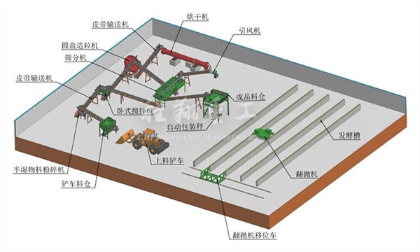 當(dāng)生產(chǎn)能力不足或者設(shè)備資金成本不夠時,可以只配置一個槽式翻堆機(jī)進(jìn)行堆肥發(fā)酵,借助有機(jī)肥粉碎設(shè)備半濕物料粉碎機(jī)進(jìn)行粉碎處理,然后再進(jìn)行有機(jī)肥造粒。