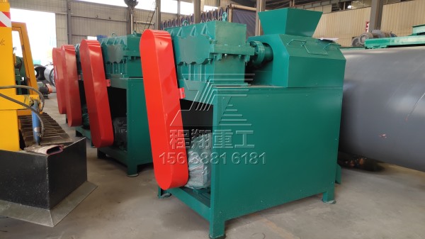 為了進(jìn)一步減少粉塵污染,可以選用對輥擠壓造粒機(jī)進(jìn)行制粒。對輥擠壓造粒機(jī)采用物理擠壓的方式造粒,擠壓造粒機(jī)屬擠出滑模型,其工作原理是由電動機(jī)驅(qū)動皮帶和皮帶輪,通過減速機(jī)傳遞給主動軸,并通過對開式齒輪與被動軸同步,相向工作。物料從進(jìn)料斗加入,經(jīng)過輥擠壓成型,脫模造球,并經(jīng)過一副鏈條,傳送到破碎篩工作室,篩下和分離成品顆(球)粒,然后返回料與新料混合,再進(jìn)行造粒。隨著電動機(jī)連續(xù)轉(zhuǎn)動,物料的不斷進(jìn)入,方能實(shí)現(xiàn)批量生產(chǎn)。