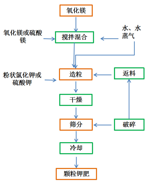 制備顆粒鉀肥的原料:粉狀氯化鉀(0-0-60)或粉狀硫酸鉀(0-0-50);黏結(jié)劑,包括氯化鎂、硫酸鎂、氧化鎂、苦土粉;填充料,包括黏土、膨潤土、石膏等。