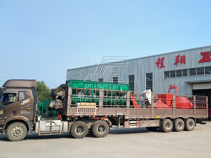 查看 > 20 2020/11由于該豬糞秸稈有機肥料生產(chǎn)線產(chǎn)量較大,因此分為多車裝置運輸。主要的豬糞加工設(shè)備有:大型秸稈粉碎機、履帶式翻堆機、臥式攪拌機、新型三合一造粒機、不同型號的滾筒篩分機以及多個型號的烘干冷卻設(shè)備。滾筒烘干設(shè)備風頭以及風機安置熱風爐以及冷卻設(shè)備多個烘干冷卻設(shè)備履帶式翻堆機以及大型秸稈粉碎機二次烘干設(shè)備滾筒篩分機以及鏟車喂料倉本次豬糞秸稈有機肥料生產(chǎn)線工藝設(shè)計流程為:利用大型秸稈粉碎機將稻草秸稈等粉碎均勻,