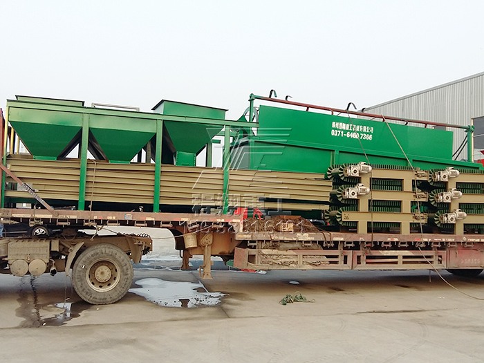 查看 > 20 2020/11由于該豬糞秸稈有機(jī)肥料生產(chǎn)線產(chǎn)量較大,因此分為多車裝置運(yùn)輸。主要的豬糞加工設(shè)備有:大型秸稈粉碎機(jī)、履帶式翻堆機(jī)、臥式攪拌機(jī)、新型三合一造粒機(jī)、不同型號的滾筒篩分機(jī)以及多個型號的烘干冷卻設(shè)備。滾筒烘干設(shè)備風(fēng)頭以及風(fēng)機(jī)安置熱風(fēng)爐以及冷卻設(shè)備多個烘干冷卻設(shè)備履帶式翻堆機(jī)以及大型秸稈粉碎機(jī)二次烘干設(shè)備滾筒篩分機(jī)以及鏟車喂料倉本次豬糞秸稈有機(jī)肥料生產(chǎn)線工藝設(shè)計流程為:利用大型秸稈粉碎機(jī)將稻草秸稈等粉碎均勻,