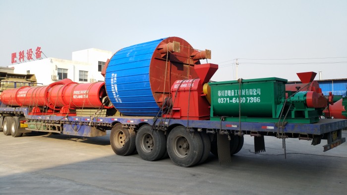 查看 > 01 2021/03本次發(fā)貨的豬糞有機肥生產線主要設備有:鏟車喂料、臥式攪拌機、有機肥濕法造粒機、滾筒篩分機以及烘干設備。BB肥攪拌機作為拋圓設備使用