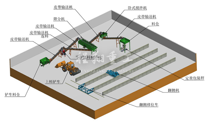 查看 > 20 2020/11由于該豬糞秸稈有機肥料生產(chǎn)線產(chǎn)量較大,因此分為多車裝置運輸。主要的豬糞加工設(shè)備有:大型秸稈粉碎機、履帶式翻堆機、臥式攪拌機、新型三合一造粒機、不同型號的滾筒篩分機以及多個型號的烘干冷卻設(shè)備。滾筒烘干設(shè)備風(fēng)頭以及風(fēng)機安置熱風(fēng)爐以及冷卻設(shè)備多個烘干冷卻設(shè)備履帶式翻堆機以及大型秸稈粉碎機二次烘干設(shè)備滾筒篩分機以及鏟車喂料倉本次豬糞秸稈有機肥料生產(chǎn)線工藝設(shè)計流程為:利用大型秸稈粉碎機將稻草秸稈等粉碎均勻,
