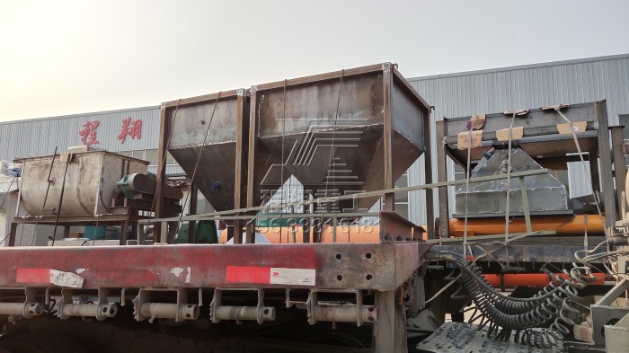查看 > 20 2020/11由于該豬糞秸稈有機肥料生產(chǎn)線產(chǎn)量較大,因此分為多車裝置運輸。主要的豬糞加工設(shè)備有:大型秸稈粉碎機、履帶式翻堆機、臥式攪拌機、新型三合一造粒機、不同型號的滾筒篩分機以及多個型號的烘干冷卻設(shè)備。滾筒烘干設(shè)備風(fēng)頭以及風(fēng)機安置熱風(fēng)爐以及冷卻設(shè)備多個烘干冷卻設(shè)備履帶式翻堆機以及大型秸稈粉碎機二次烘干設(shè)備滾筒篩分機以及鏟車喂料倉本次豬糞秸稈有機肥料生產(chǎn)線工藝設(shè)計流程為:利用大型秸稈粉碎機將稻草秸稈等粉碎均勻,
