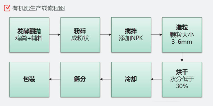 查看 > 13 2020/10本次發(fā)貨的設(shè)備是程翔重工是為江西某客戶(hù)定制的,簡(jiǎn)單的年產(chǎn)1萬(wàn)噸雞糞有機(jī)肥生產(chǎn)線,主要設(shè)備有:鏈?zhǔn)椒鬯闄C(jī)、滾筒篩分機(jī)、濕法攪齒造粒機(jī)、鏟車(chē)喂料倉(cāng)以及自動(dòng)包裝秤。改雞糞生產(chǎn)線的工作流程為:發(fā)酵——粉碎——攪拌——造粒——篩分——包裝運(yùn)輸1.發(fā)酵是第一步,畜禽糞便含有大量病蟲(chóng)卵,需要進(jìn)