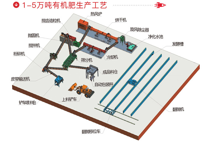 要想規(guī)?;?、商品化生產(chǎn)高質(zhì)量的有機(jī)肥料,就需要借助專業(yè)的有機(jī)肥加工成套設(shè)備,經(jīng)過發(fā)酵腐熟、添加N、P、K等營養(yǎng)元素,粉碎攪拌均勻,之后進(jìn)行造粒、烘干冷卻、篩分等各個環(huán)節(jié),就能得到質(zhì)量大小一致、營養(yǎng)成分分布均勻、外觀一致的高質(zhì)量的標(biāo)準(zhǔn)有機(jī)肥料了。有機(jī)肥生產(chǎn)期間需要用到槽式翻堆機(jī)、臥式攪拌機(jī)、半濕物料粉碎機(jī)、有機(jī)肥造粒機(jī)、烘干冷卻機(jī)、滾筒篩分機(jī)、自動包裝秤等等有機(jī)肥加工配套設(shè)備,整個肥料生產(chǎn)線的自動化程度越高,工作效率越快,越能節(jié)省不少的人工成本。