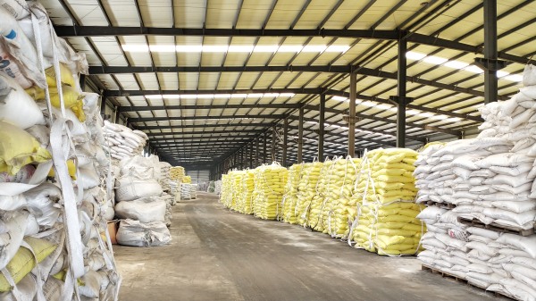 年產(chǎn)10萬噸的復合肥生產(chǎn)線成品庫堆放: