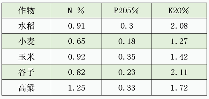 上圖為常見(jiàn)的農(nóng)作物秸稈養(yǎng)分含量(烘干基)