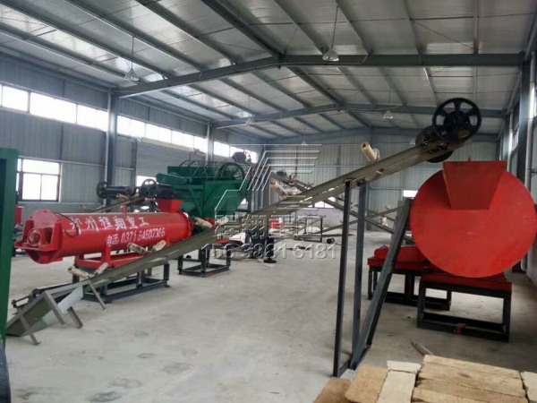 查看 > 13 2020/10本次發(fā)貨的設(shè)備是程翔重工是為江西某客戶定制的,簡(jiǎn)單的年產(chǎn)1萬噸雞糞有機(jī)肥生產(chǎn)線,主要設(shè)備有:鏈?zhǔn)椒鬯闄C(jī)、滾筒篩分機(jī)、濕法攪齒造粒機(jī)、鏟車喂料倉(cāng)以及自動(dòng)包裝秤。改雞糞生產(chǎn)線的工作流程為:發(fā)酵——粉碎——攪拌——造粒——篩分——包裝運(yùn)輸1.發(fā)酵是第一步,畜禽糞便含有大量病蟲卵,需要進(jìn)